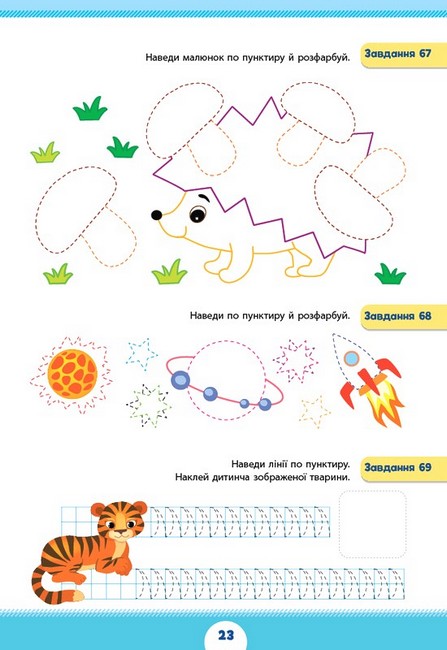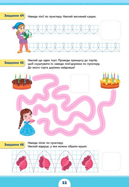 Із книжкою «Підготовчі прописи» дитина потренує дрібну моторику пальців рук і підготує руку до письма, адже буде наводити лінії по пунктиру, обводити та розфарбовувати предмети; малювати візерунки та фігури по клітинках, доповнювати завдання потрібними наліпками.
