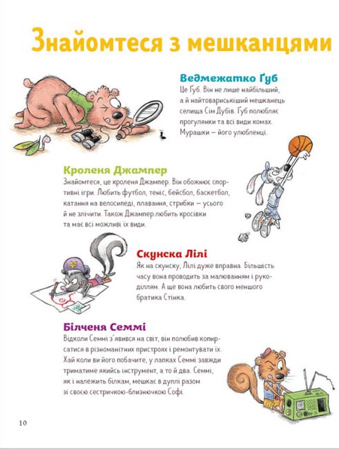 У селищі Сім Дубів мешкають ведмедик Ґуб, білченя Софі, кроленя Джампер і їхні друзі. Щодня дітлахи навчаються і розважаються. Та часто змушені й вирішувати якісь клопоти. Наприклад, що робити, коли тобі нудно? Як переконати батьків утілити мрію? І чи можливо досягти перемоги в командній грі, коли супротивники значно вправніші?