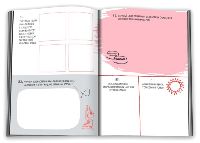 Якщо малювання - твоя пристрасть, але іноді бракує ідей, тоді цей креативний мистецький щоденник точно стане тобі у пригоді! Незвичайні завдання на кожен день року не лише дозволять приємно провести час, а й добряче прокачають твою уяву. Ти споглядатимеш речі з різних ракурсів, вигадуватимеш химерних істот і створюватимеш цілі світи в обмеженому просторі, а ще познайомишся з цікавими художніми техніками і прийомами, до яких вдавалося чимало відомих митців. Коли ж усі завдання буде виконано, ти матимеш справді унікальне свідчення своїх досягнень за рік!