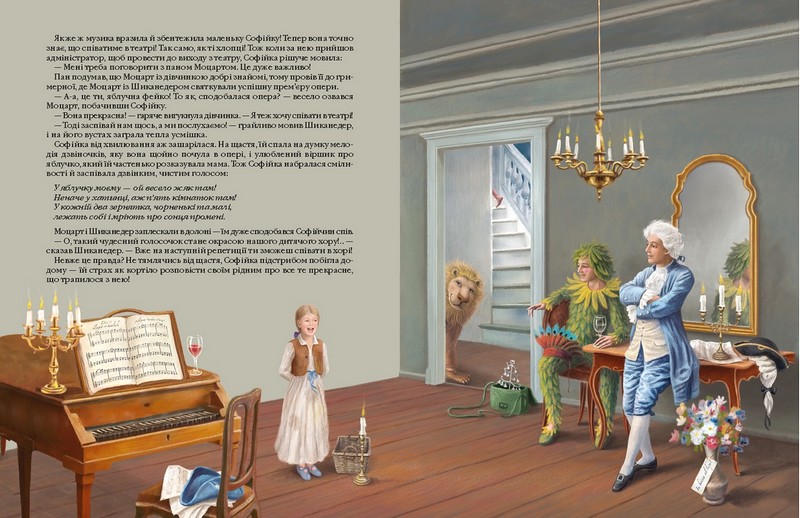 Маленька Софійка щойно пішла до школи у Відні, і вже допомагає своїй мамі — розносить замовникам попрані й випрасувані сорочки. Дорогою вона мало не щодня зупиняється біля театру, щоб послухати музику, яка ллється з вікон... Щасливим випадком дівчинка знайомиться з Моцартом і потрапляє на прем‘єру найчарівнішої і найзагадковішої його опери «Чарівна флейта»... А далі — чи не вперше в історії дитячої книжки — коротко, доступно і з неймовірно барвистими ілюстраціями — подається сюжет самої опери.