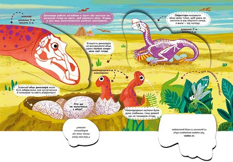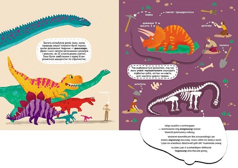 Ця книжка є справжньою енциклопедією життя динозаврів, які мешкали на нашій планеті в загадкові доісторичні часи. Мандруйте сторінками книжки: проберіться крізь зарості папороті та хвоща, зазирніть у підводний світ моря або посидьте на високій скелі, щоб познайомитися з цими цікавими тваринами та їхніми не менш дивовижними сусідами. Не забувайте відкривати віконця, щоб не пропустити найцікавіше!
