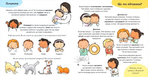 - Книжка на важливу й непросту в поясненні тему: розуміння своїх та чужих емоцій.