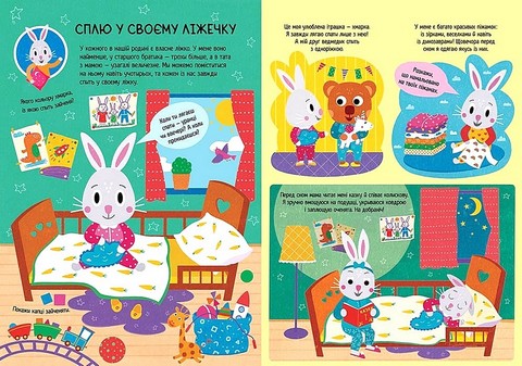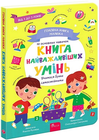 \nЦя книга розповідає про основні уміння, які дитина має опанувати в найменшому віці. Малюк вчитиметься одягатися та їсти; дізнається, як ходити на горщик, чистити зубки й мити ручки; зрозуміє, як слід поводитися з іншими дітьми та багато іншого. А допоможе в цьому весела компанія звірят, які так само, як і дитина, вчаться самостійно виконувати важливі повсякденні справи.