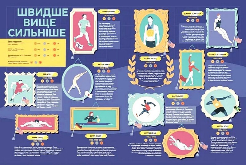 Кожний розворот — це ретроспектива літніх Олімпійських ігор від античності до сучасності. Тож пристібаємо паски, щоб разом «Швидше, вище, сильніше» стрибнути до машини часу і на власні очі побачити, як Олімпіада об’єднувала п’ять континентів своїми кільцями в той час, коли руйнувалися імперії та змінювався світ. Згадаймо видатні постаті, невдачі, сльози, бойкоти, конфлікти, успіхи та рекорди. Сімсот фактів розкажуть більше, ніж про спорт. Вони розкажуть про нашу з вами історію.