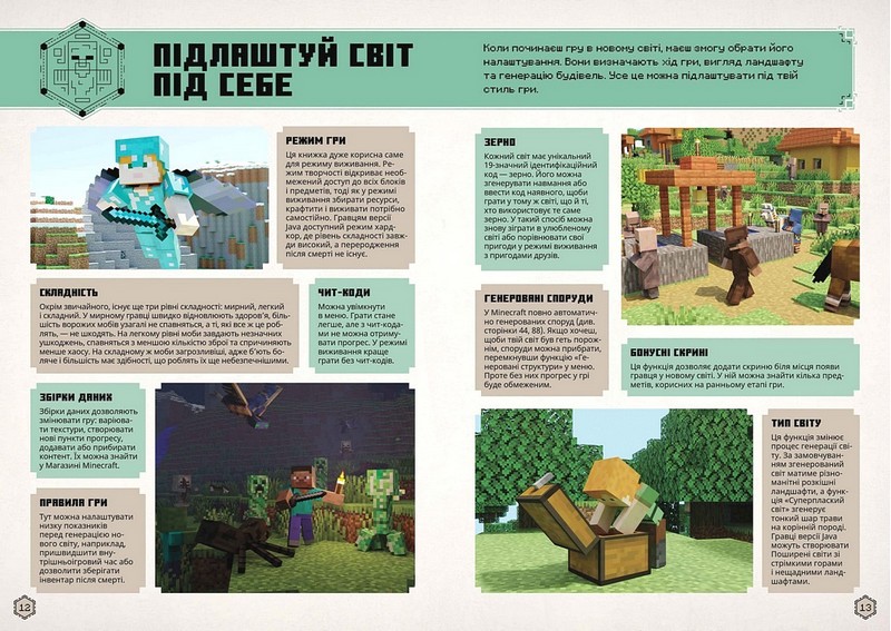 - це абсолютно нове видання, яке містить оновлені поради з виживання та дослідження всесвіту Minecraft