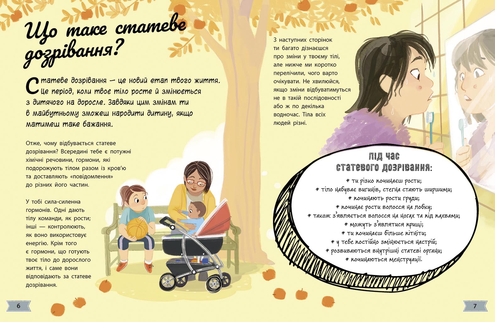 «Путівник по дорослішанню» від Аніти Ганері розвіє багато твоїх страхів та надасть тобі упевненості на складному шляху перетворення з дівчинки на жінку. Ти з'ясуєш, що відбувається з твоїм тілом, як зовні, так і зсередини: чому збільшуються груди та з’являється волосся на тілі, що таке менструація і чому твій настрій вмить змінюється від «я всіх вас люблю» до «не хочу нікого бачити»? Дізнавайся більше про саму себе — і сміливо розпочинай новий цікавий етап свого життя!