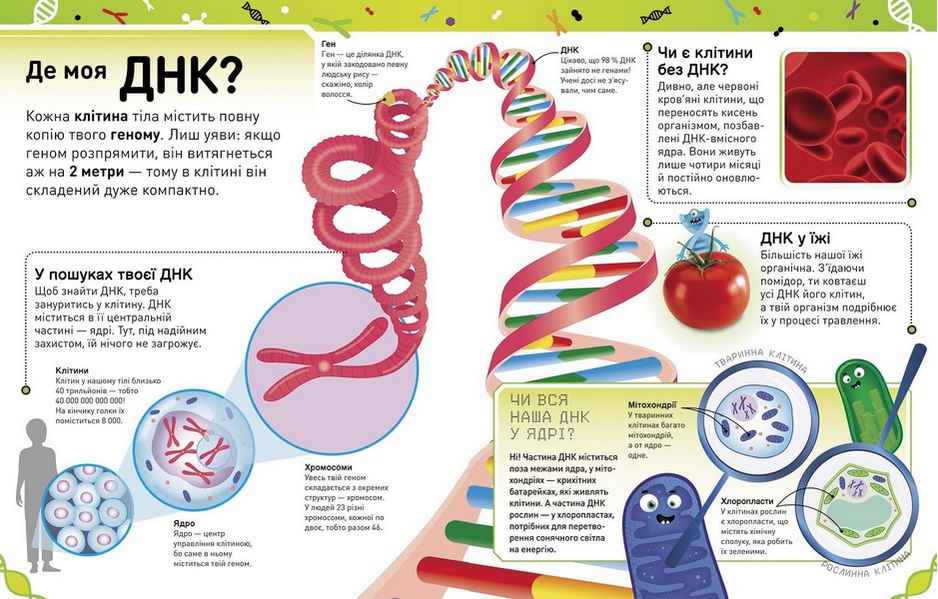 Надзвичайні ДНК Розширення світогляду Ранок. У виданні яскраво подано цікаві факти про дивовижну молекулу ДНК і гени, які є ключами всього життя від кита до дрібної амебки.