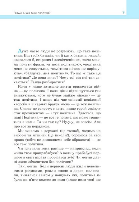 Дуже часто люди не розуміють, що таке політика. Від твоїх батьків, чи й їхніх батьків, людей, здавалося б, старших і досвідченіших, часто можна почути фрази: «я поза політикою», «політика мене не стосується», «політики нічого не вирішують», «байдуже, яка політика». То що ж таке ця політика? Де вона живе? Чому всі від неї так сахаються?