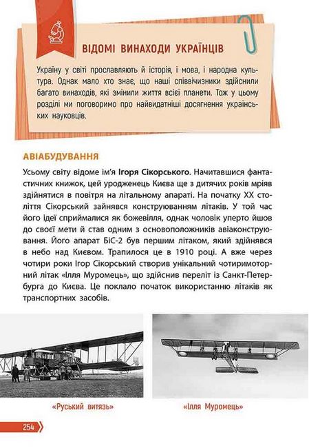 - Україну у світі, видатних співвітчизників та їхні винаходи;
