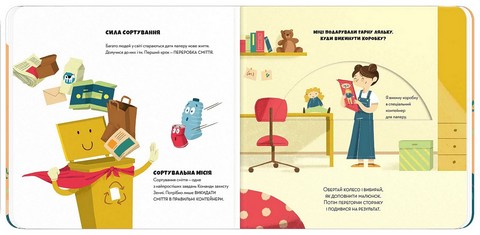 - Це цікава книжка-гра. На кожному розвороті є інтерактив, з яким дитина у захопливій і практичній формі зрозуміє, як екологічно поводитися з папіром.