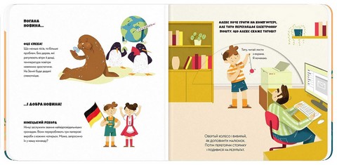 З книгами серії «Рятуй Землю» діти зрозуміють, як наші дії впливають на довкілля і набудуть нових екозвичок. На кожній сторінці за допомогою інтерактивних коліс діти побачать результат свого вибору й оцінять, як він впливає на планету.