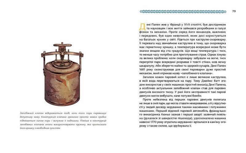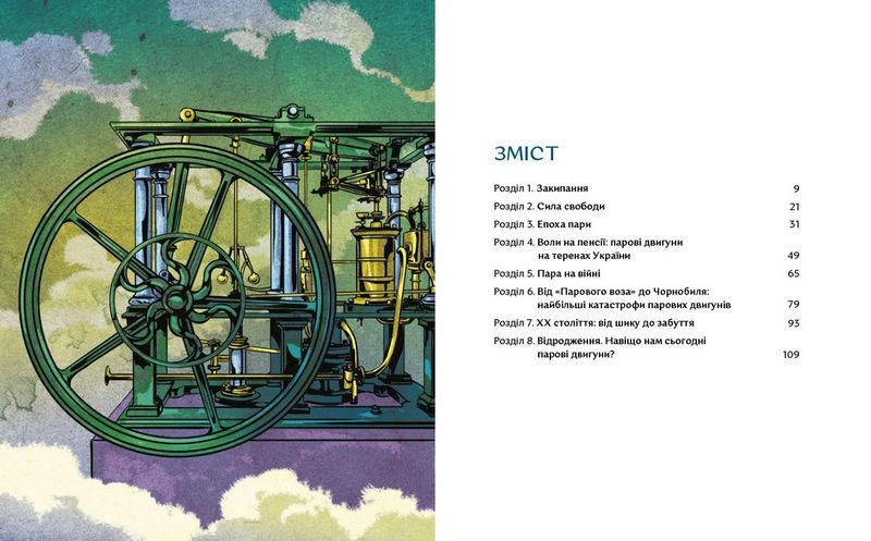 Паровий двигун — надважливий винахід в історії людства. Він замінив людську робочу силу і пришвидшив темп життя. Сила пари стала одним із чинників промислової революції ХІХ століття, що змінила й суспільний лад. Наприклад, сприяла розпаду імперій і скасуванню кріпацтва. Автор пропонує зануритися в ту добу і простежити розвиток парових технологій у світі та Україні.