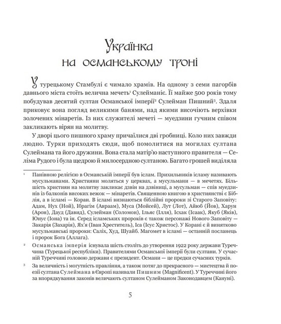 Історія українки Роксолани вражає. Адже вона пройшла складний життєвий шлях — від полонянки кримського хана до дружини султана Сулеймана та матері його наступника — Селіма Другого. Відтак у Стамбулі отримала ім’я Гюррем. За життя ця жінка листувалася із правителями Європи та Азії, мала великий вплив на політику та активно займалася благодійністю. У книжці йдеться про її життєвий шлях, місце в історії та велику родину.
