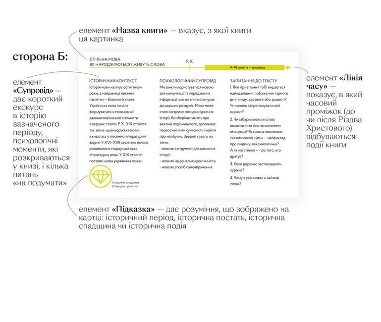 Унікальність видання – це складові, що допомагають дорослим знайти правильні слова для обговорення психологічних моментів з дітьми та глибшого розуміння історичного контексту: