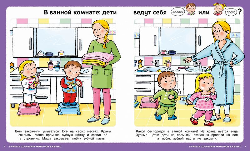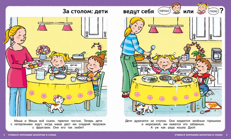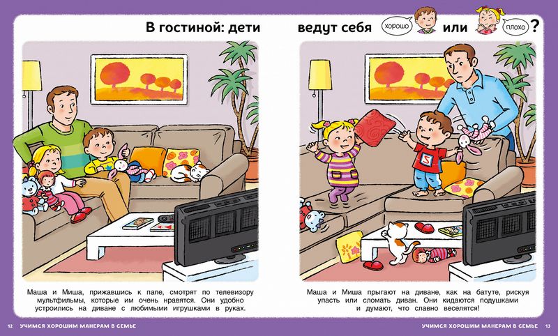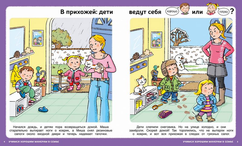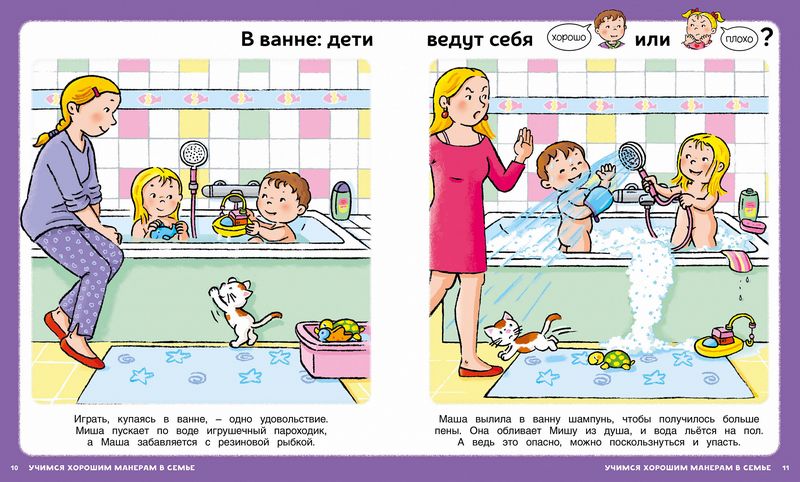 Весёлые и понятные иллюстрации помогут легко определить, какое поведение является правильным в какой-либо ситуации, а какое нет.