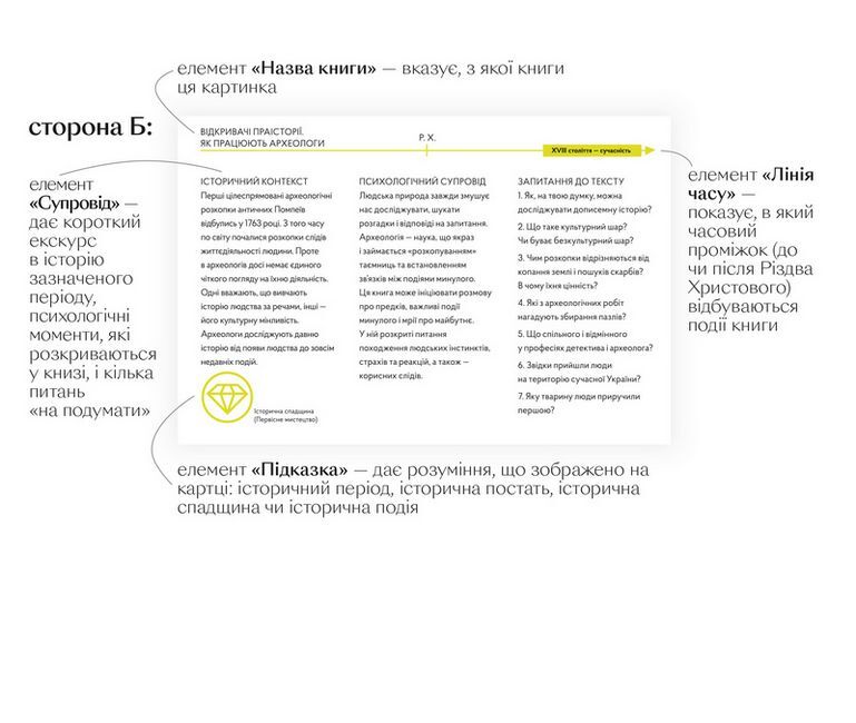 Унікальність книжок «Порталу» — в особливій системі, що допомагає дорослим знайти правильні слова для обговорення психологічних моментів з дітьми та глибше зрозуміти історичний контекст. До кожного друкованого видання команда освітян, психологів та істориків розробила детальні бекґраунди за QR-кодами та ігрові закладки, що містять: