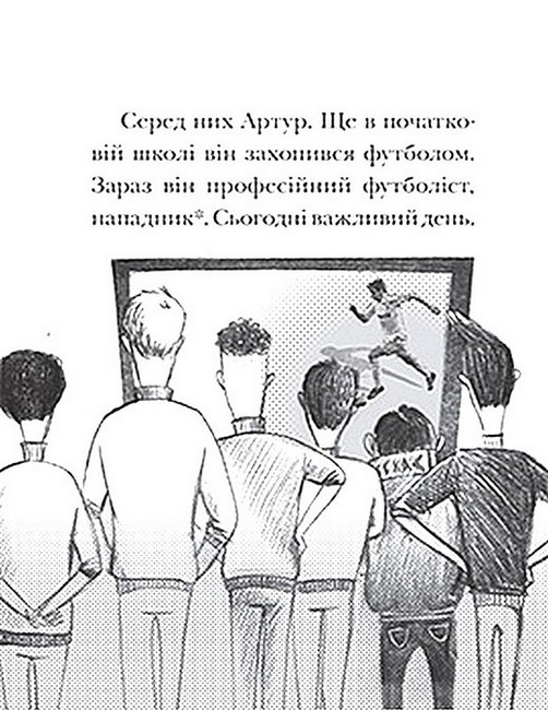 "Коли я писала цю книжку, то взяла інтерв’ю у кількох професійних футболістів. Від кожного з них отримала інформацію: що футболісти роблять, як харчуються, чим займаються щодня, чого бояться і про що мріють. З їхніх оповідей вибрала те, що повторювалося. Так і з’явилися Артур та «Вирішальний матч»".