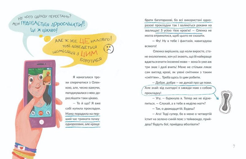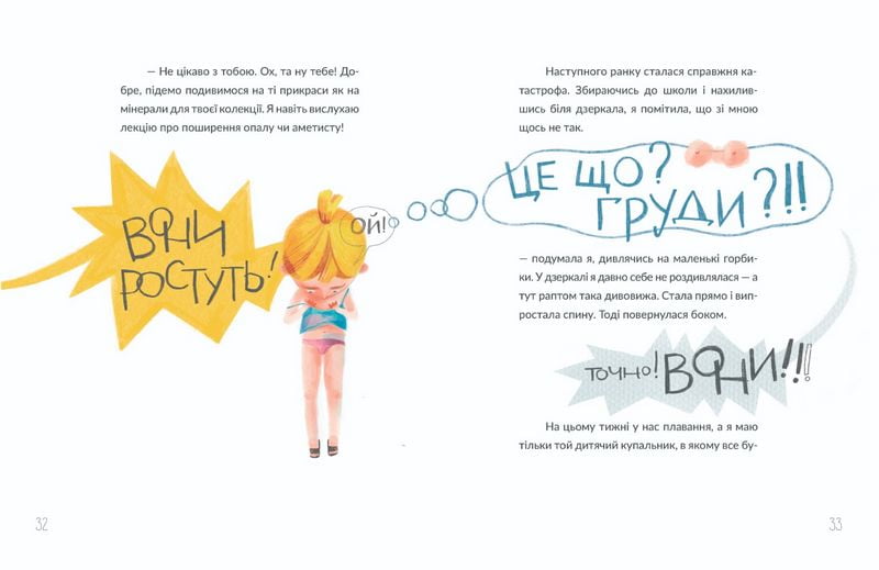 Привіт, я Віточка, мені майже десять і в мене ростуть груди, швидко змінюється настрій, а ще з’явилися три волосини під пахвами. І хоча моя подруга Оленка радіє моєму дорослішанню більше, ніж я, мені теж цікаво, як змінюється моє тіло. Я чесно розкажу тобі, що відчуваю та як посварилася з Іркою, чому займаюся тейквондо і як це, коли цілий клас ведуть на урок статевого виховання. Сумно точно не буде, бо ж статеве дозрівання таке… хм… захопливе.