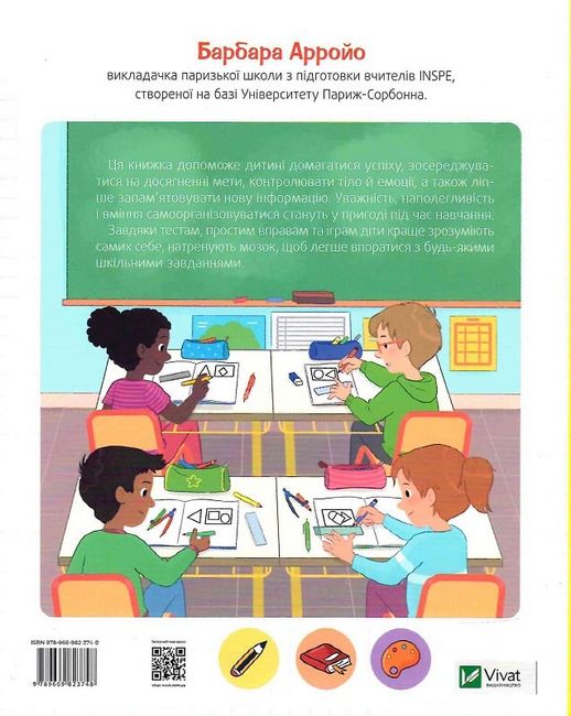 Ця книжка допоможе дитині домагатися успіху, зосереджуватися на досягненні мети, контролювати тіло й емоції, а також ліпше запам’ятовувати нову інформацію. Уважність, наполегливість і вміння самоорганізовуватися стануть у пригоді під час навчання.