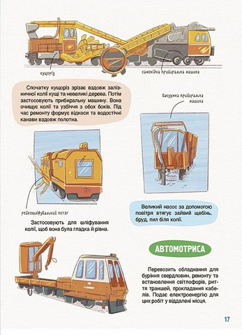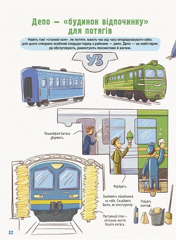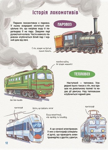 Запрошуємо у дивовижну подорож залізницею України та світу! Ця енциклопедія відкриє таємниці про те, як створювалися перші паротяги, як працюють українські вокзали та що чекає залізничний транспорт у майбутньому Цікаві факти, веселі ілюстрації й прості пояснення зроблять читання приємним і пізнавальним. Енциклопедія стане ідеальним подарунком для допитливих дітей від 8 років, які люблять дізнаватися нове!
