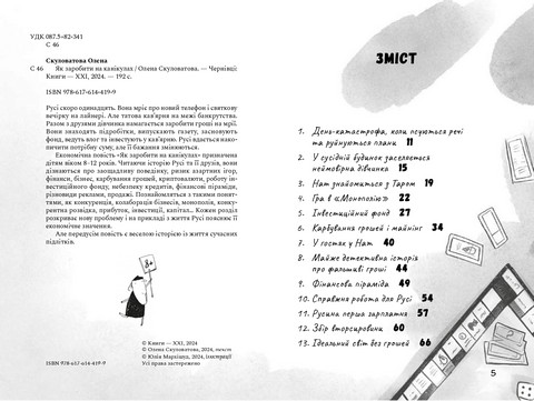 Економічна повість «Як заробити на канікулах» призначена дітям віком 8–12 років. Читаючи історію Русі та її друзів, вони дізнаються про заощадливу поведінку, ризик азартних ігор, фінанси, бізнес, карбування грошей, криптовалюти, роботу інвестиційного фонду, небезпеку кредитів, фінансові піраміди, різновиди реклами, продажі. Познайомляться з такими поняттями, як конкуренція, колаборація бізнесів, монополія, конкурентна розвідка, прибуток, інвестиції, капітал... Кожен розділ розкриває нову проблему і на прикладі з життя Русі пояснює її економічне значення.