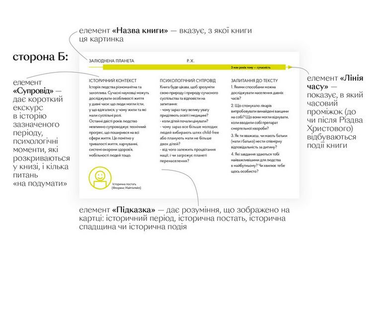 Унікальність видання – це складові, що допомагають дорослим знайти правильні слова для обговорення психологічних моментів з дітьми та глибшого розуміння історичного контексту: