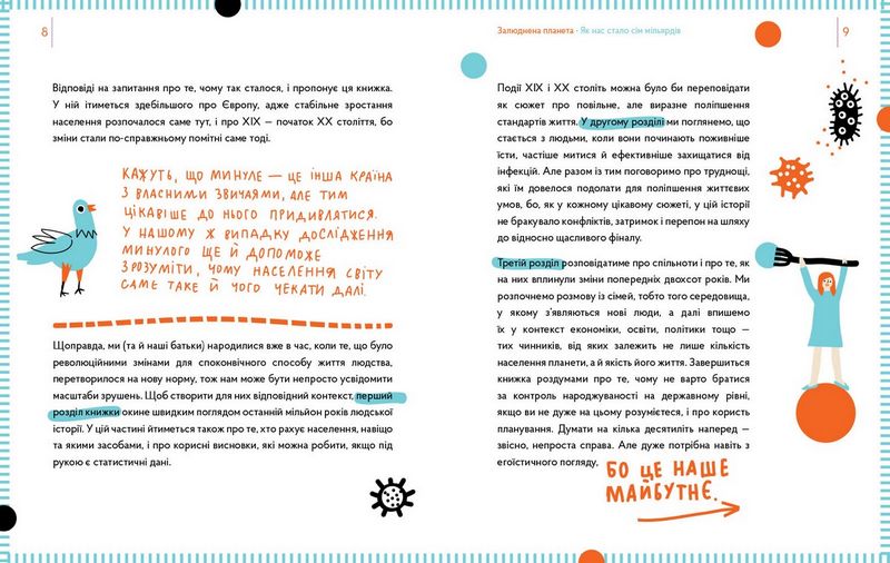 Демографічна наука має чим здивувати і захопити. За статистичними даними про населення світу криються глобальні зв'язки та процеси, що визначають життя кожної людини. Як географічні відкриття впливають на тривалість життя, а освіта — на кількість дітей у сім'ї? Ця книжка дає змогу відчути себе частиною величезного людства й тривалих історичних перетворень — і зрозуміти, яким саме шляхом ми прийшли в нинішню точку розвитку.