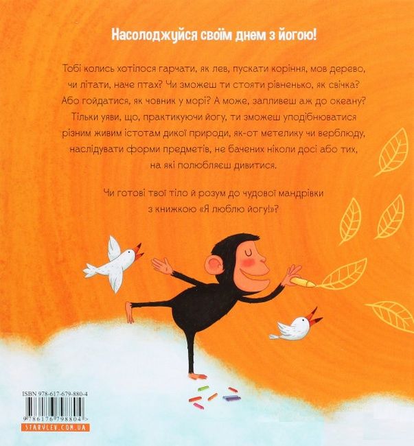 Тобі колись хотілося гарчати, як лев, пускати коріння, мов дерево, чи літати, наче птах? Чи зможеш ти стояти рівненько, як свічка? Або гойдатися, як човник у морі? А може, запливеш аж до океану? Тільки уяви, що, практикуючи йогу, ти зможеш уподібнюватися різним живим істотам дикої природи, як-от метелику чи верблюду, наслідувати форми предметів, не бачених ніколи досі або тих, на які полюбляєш дивитися.