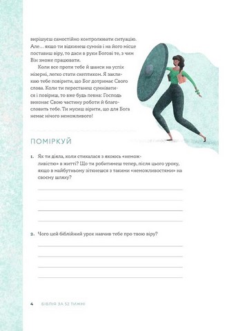 «Біблія за 52 тижні» — це натхненна мандрівка для християнок, у якій увесь маршрут поділено на щоденні читання Божого Слова. Незалежно від того, чи ти проходитимеш цей духовний шлях наодинці, чи в групі з іншими жінками, коментарі до біблійних текстів, які запропоновано для роздумів, запитання та запис власних думок допоможуть тобі глибше й по-новому зрозуміти важливі Господні істини, зміцнити стосунки з Ісусом Христом і плідно провести час із Божим Словом.