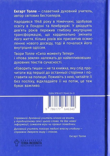 Послання цієї книги настільки ж ясно і недвозначно: існує шлях з страждань в світ безтурботності і спокою. Якщо навчитися чути голос Тиші.