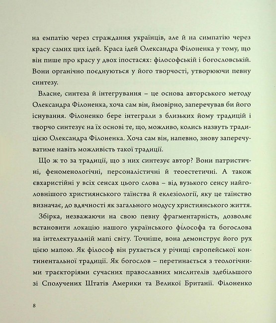 Ця книга – не лише дослідження богослов’я краси, а й запрошення до особистої подорожі. Вона показує, що сучасна українська філософія та богослов’я є невід’ємною частиною світового інтелектуального ландшафту. У часи випробувань такі тексти стають променем надії – нагадуванням про силу думки та духовного пошуку, що допомагають не лише осмислювати світ, а й чинити опір його руйнуванню.