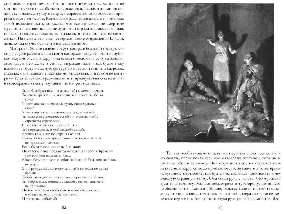Генри Райдер Хаггард принадлежит к писателям так называемого апофеозного романтизма с его особой этикой, подразумевающей духовное и эмоциональное обновление человека. Возможно, именно этого так не хватает нашему прагматичному веку, и потому книгами Хаггарда, увидевшими свет на рубеже XIX–XX столетий, зачитываются миллионы наших современников во всем мире. Автору знаменитых приключенческих романов, таких как «Копи царя Соломона» «Аллан Квотермейн», «Дитя из слоновой кости», «Священный цветок», не чужда была и тема вечной женственности, бессмертной неувядающей красоты, которой он посвятил мистическую трилогию об Айше — Той, чье слово закон, непредсказуемой, прекрасной, обреченной на вечное одиночество...