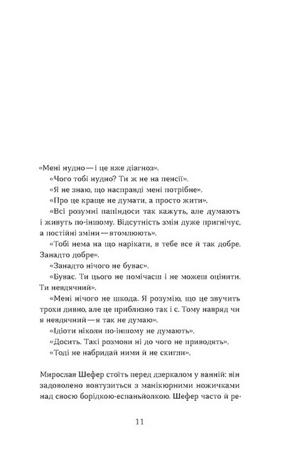Криза середнього віку, безмежна самотність, страх близькості, владна мати, марний пошук свого справжнього призначення та справжнього кохання — усе це поволі руйнує Мирослава. І коли він зустрічає ту саму, то чи зможе бути з нею, чи перетворить і її на чергову п’єсу?
