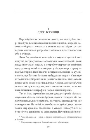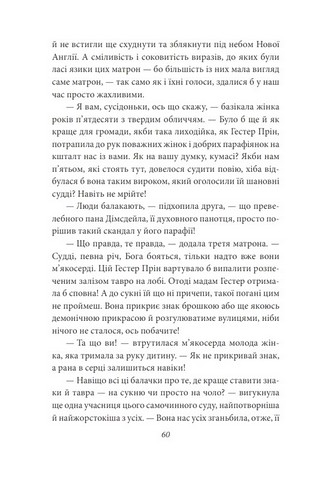 Роман «Багряна літера» американського письменника Натаніеля Готорна одразу підкорив читачів і водночас викликав шквал критики й засудження у святош. Його герої живуть у Бостоні XVII століття, що тоді був центром похмурого, жорстокого пуританства. Роман починається з яскравої сцени судилища над жінкою, яка посміла бути щасливою, — на противагу чиїйсь думці покохала й народила позашлюбну дитину. Проте навіть стоячи біля ганебного стовпа на базарній площі, в оточенні вороже налаштованої юрби, Гестер Прін не схиляє голови й гідно приймає вердикт суду — довічно носити на грудях клеймо ганьби: вишиту на одязі багряну літеру «А». Вона не тільки