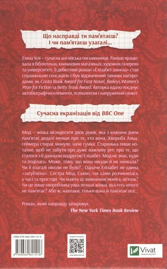 Мод — жінка вісімдесяти двох років, яка з кожним днем пам’ятає дедалі менше про те, хто вона. Хвороба Альцгеймера стирає минуле, наче гумка. Старенька пише записки, щоб не забути про дуже важливу річ: про те, що сталося з її давньою подругою Елізабет. Мод не знає, куди та зникла. Може, тому, що вона нікуди й не зникала? Чи її взагалі ніколи не було?.. Одначе Елізабет не єдина «загублена». Сестра Мод, Сьюкі, так само розчинилась у часі та просторі. Чи мають ці зникнення якийсь зв’язок? Чи це лише хвороблива уява літньої жінки, яка геть нічого не пам’ятає. Або ж навпаки, тільки вона й пам’ятає все…