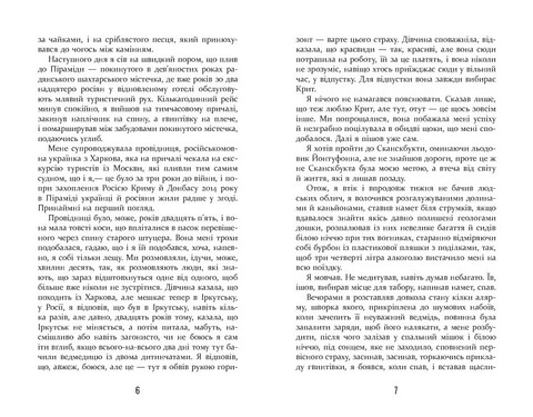\nЦей роман — класична історія совєтів 30-х років, оповідь про страшні речі від очевидця і мимовільного призвідця тих жахів, а водночас ода суворій природі й людській витривалості. Це сповідь людини, яка намагається з’ясувати, що ж насправді важить у житті і чи є в цьому хоч якийсь сенс. Сидячи в скутій льодом яхті, маючи лише олівець і папір, без єдиної живої душі навколо, Конрад Відух безжально препарує своє минуле, шукаючи відповідь на єдине питання — чи чєловєк я?