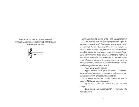 Події роману Галини Матвєєвої «Ключ соль» охоплюють часовий проміжок від кінця 1990-х років минулого століття до першого року повномасштабної російсько-української війни. Головні герої книжки — скрипаль Семен Штейнгарт і піаністка Інна Холодіна — харківські музиканти, яких ще за часів навчання в консерваторії зв’язали відносини, набагато більш глибокі, ніж дружба. І йдеться у книжці не лише про музику, хоча і музики тут удосталь,— так само, як і жартів, сварок, кохань, таємниць і втрат. Усе, як у житті.