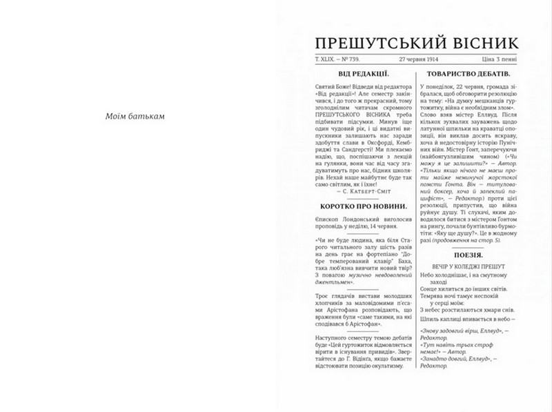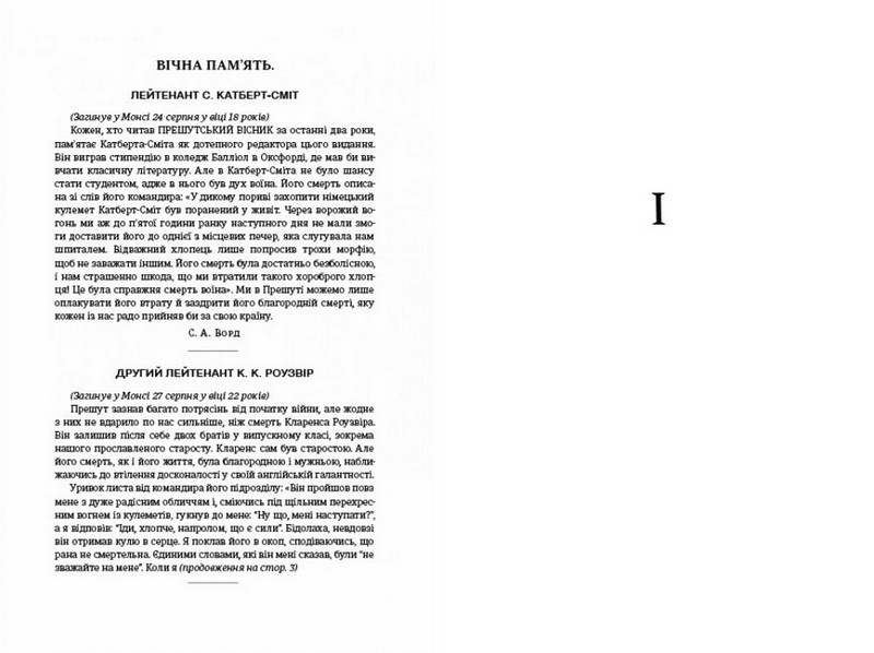 1914 рік. Перша світова війна змінює життя по обидва боки фронту. Генрі Ґонт та Сідні Еллвуд — учні елітного Прешутського коледжу, які ще не усвідомлюють усіх страхів війни. Щотижня читаючи списки загиблих у місцевій газеті, вони все частіше натрапляють на імена своїх друзів і поступово розуміють, що чекає на них самих.