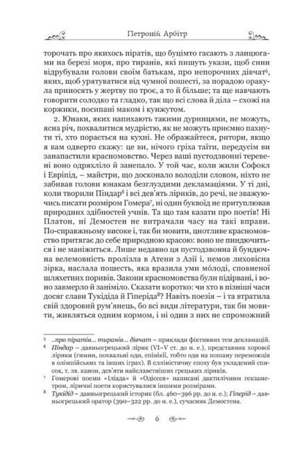Роман «Сатирикон», приписуваний традицією Петронієві Арбітру, – неповторний своїм змістом і формою твір, що не має аналога в античній літературі.
