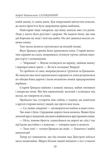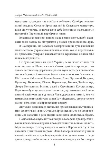 Роман А. Чайковського «Сагайдачний» у трьох книгах (1924–1929) присвячено біографії славетного козацького полководця та справжнього патріота Петра Конашевича-Сагайдачного, чий життєвий шлях простежено від дитинства до вершин військової слави. Написанню твору передувало ґрунтовне вивчення численних історичних документів із праць М. Грушевського, М. Максимовича, Д. Яворницького. Це масштабне епічне полотно, події якого розгортаються на широкому географічному та історичному тлі й відтворюють реалістичну панораму життя різних верств українського народу доби козаччини, зокрема останніх десятиліть XVI – початку XVII ст. Цей твір — про героїзм, самовідданість, патріотичні почуття українців, проявлені під час оборони рідної землі від турецько-татарських завойовників. А ще — про вірну дружбу та пристрасне кохання.