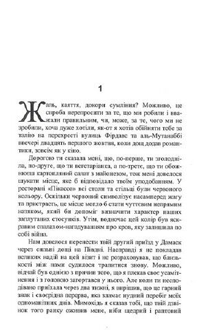 Автор роману проводить читачів вулицями сучасного Дамаска та пропонує власний погляд на життя у місті, яке зазнало втрат під час війни в Сирії. Головний герой роману — письменник, який намагається зорієнтуватися в новій, зруйнованій війною реальності. Він показує нам, яким є повсякденне життя в Дамаску — водночас трагічним і рутинним. Спираючись на свій досвід журналіста, поета і прозаїка, Халіль Свейлех надзвичайно образною мовою пише про втрачені можливості, докори сумління й передусім про кохання, яке попри всю жорстоку реальність пробуджується у зраненій душі.