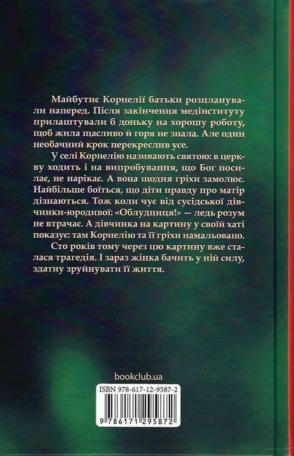У селі Корнелію називають святою: в церкву ходить й на випробування, що Бог посилає, не нарікає. А вона щодня гріхи замолює. Найбільше боїться, що діти правду про матір дізнаються. Тож коли чує від сусідської дівчинки-юродивої: «Облудниця!» — ледь розум не втрачає. А дівчинка на картину у своїй хаті показує: там Корнелію та її гріхи намальовано.