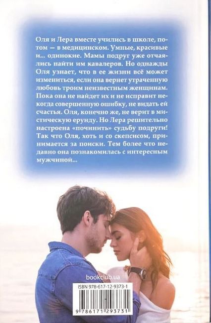 Оля и Лера вместе учились в школе, потом — в медицинском. Умные, красивые и... одинокие. Мамы подруг уже отчаялись найти им кавалеров. Но однажды Оля узнает, что в ее жизни всё может измениться, если она вернет утраченную любовь троим неизвестным женщинам. Пока она не найдет их и не исправит некогда совершенную ошибку, не видать ей счастья. Оля, конечно же, не верит в мистическую ерунду. Но Лера решительно настроена «починить» судьбу подруги! Так что Оля, хоть и со скепсисом, принимается за поиски. Тем более что недавно она познакомилась с интересным мужчиной...