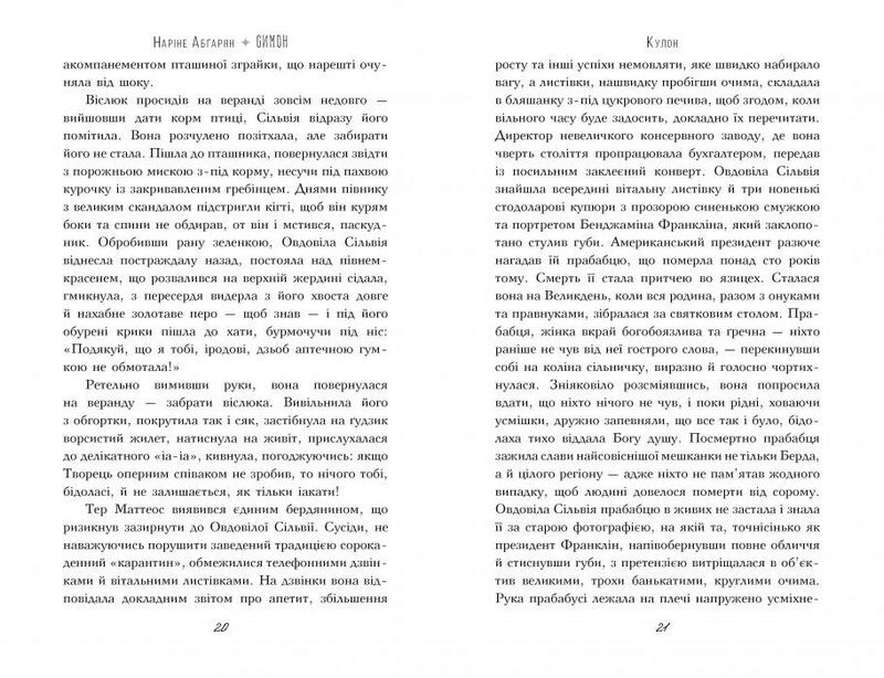 Неймовірна за силою хроніка переплетених доль, кожне слово якої сповнене любові до людей, від визнаної майстрині художнього слова, авторки знаменитої «Манюні» Наріне Абґарян — те, що залишається в серці назавжди.- ISBN9789669176592