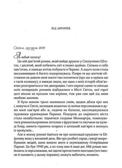 Керолайн прокидається в паризькій лікарні, нічого не пам’ятаючи про своє минуле, і з подивом дізнається, що жила нецікавим життям у просторій квартирі на березі Сени. Пам’ять повільно повертається, але вона не може позбутися відчуття, що їй загрожує небезпека. В одній із шафок Керолайн знаходить листи жінки зі страшного 1943 року. Їх авторка Селін — молода вдова, яка жила в окупованому нацистами Парижі. У цих листах — історія її непростого життя, сповненого страху смерті, історія вибору, на який колись зважилася Селін за ради порятунку найдорожчої людини у своєму житті.