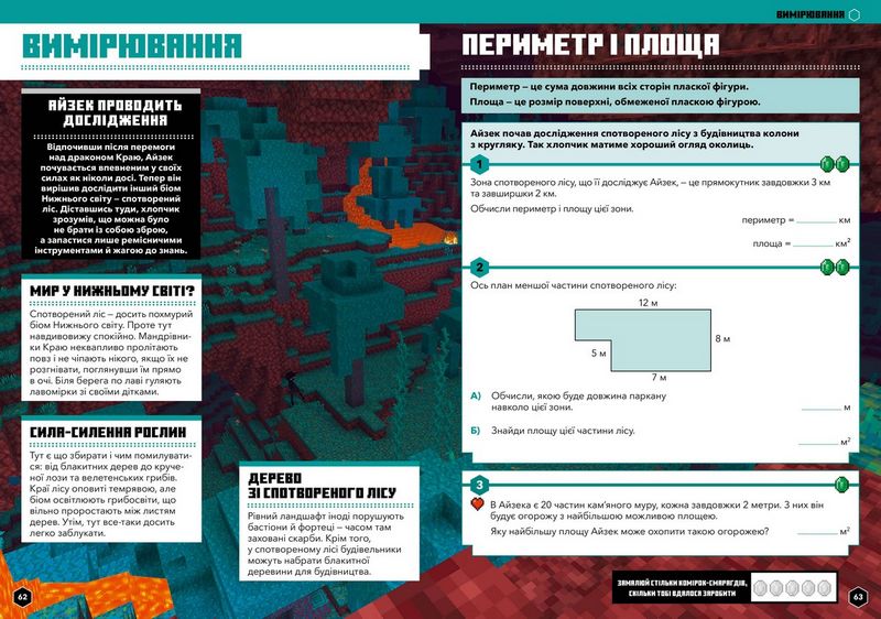 На сторінках цього посібника ваша дитина порине у світ Minecraft з його калейдоскопом пригод і вражень, водночас відточуючи свої математичні навички. З його допомогою ваша дитина перенесеться у захопливий світ, де на неї чекатимуть ігрові персонажі — Джейкоб і Калі, а також будівництво споруд і пошуки скарбів… А ще ж треба давати раду докучливим мобам!Чому варто придбати: