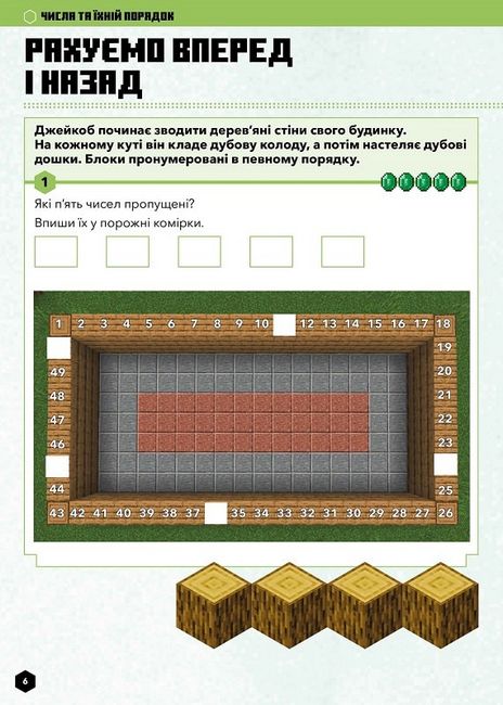 • Виконуйте вправи, щоб допомогти персонажам Minecraft завершити свої місії!