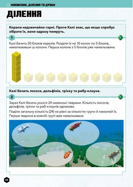 На сторінках цього посібника ваша дитина порине у світ Minecraft з його калейдоскопом пригод і вражень, водночас відточуючи свої математичні навички. З його допомогою ваша дитина перенесеться у захопливий світ, де на неї чекатимуть ігрові персонажі — Джейкоб і Калі, а також будівництво споруд і пошуки скарбів… А ще ж треба давати раду докучливим мобам!