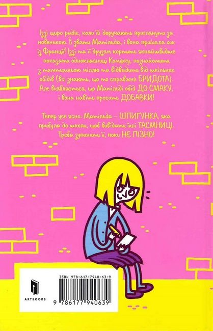 Пригоди Іззі та її друзів, що врятували школу від прибульців, тривають! Іззі щиро радіє, коли їй доручають приглянути за новенькою. Її звати Матільда, і вона аж із Франції приїхала! Друзям кортить якнайшвидше показати однокласниці Комірку, познайомити з тамтешньою міллю та відвадити від шкільних обідів (всі знають, що то справжня БРИДОТА). Але виявляється, що Матільді обід ДО СМАКУ, і вона навіть просить ДОБАВКИ! Тепер усе ясно. Матільда — ШПИГУНКА, яка прибула до школи, щоб вивідати їхні ТАЄМНИЦІ. Треба зупинити її, поки НЕ ПІЗНО!