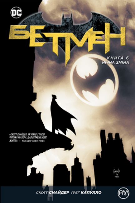 Беручись до Бетмена, Скотт Снайдер та Ґреґ Капулло запалили світ коміксів «СУДОМ СОВ», «СМЕРТЮ СІМ’Ї» та «НУЛЬОВИМ РОКОМ». Вперше всі події, що сталися в проміжках між історіями, зібрані під однією обкладинкою. Тут Бетмен оплакує сина, заглиблюється у надра лікарні Аркем і вистежує серійного вбивцю. Охоплюючи минуле, теперішнє та майбутнє, «БЕТМЕН: НІЧНА ЗМІНА» розширює і доповнює одну з найулюбленіших серій коміксів.